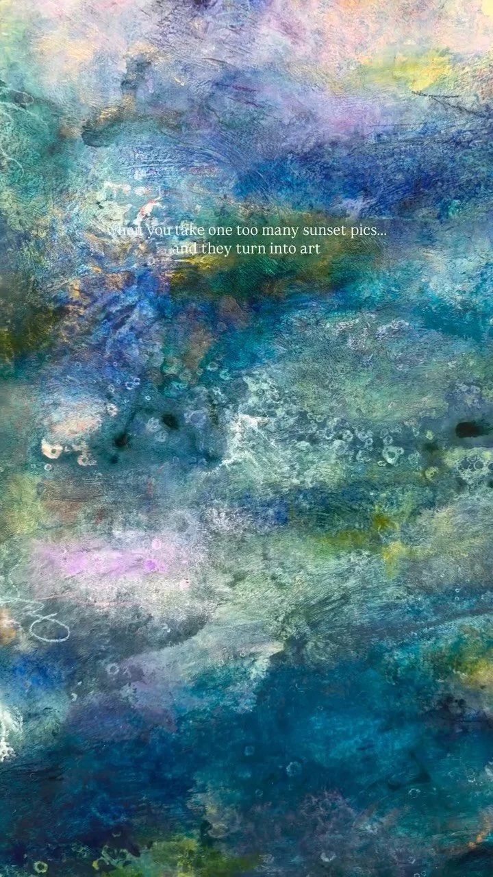 Inspired by annual trips to Pass Christian, Mississippi with our best friends and families, Stay for the Sunset reflects those quiet Gulf Coast evenings when the light begins to fade and everyone lingers a little longer to watch the final glow of the day. With layers of serene purples and atmospheric blues, this piece was created to capture that restorative, coastal calm.
